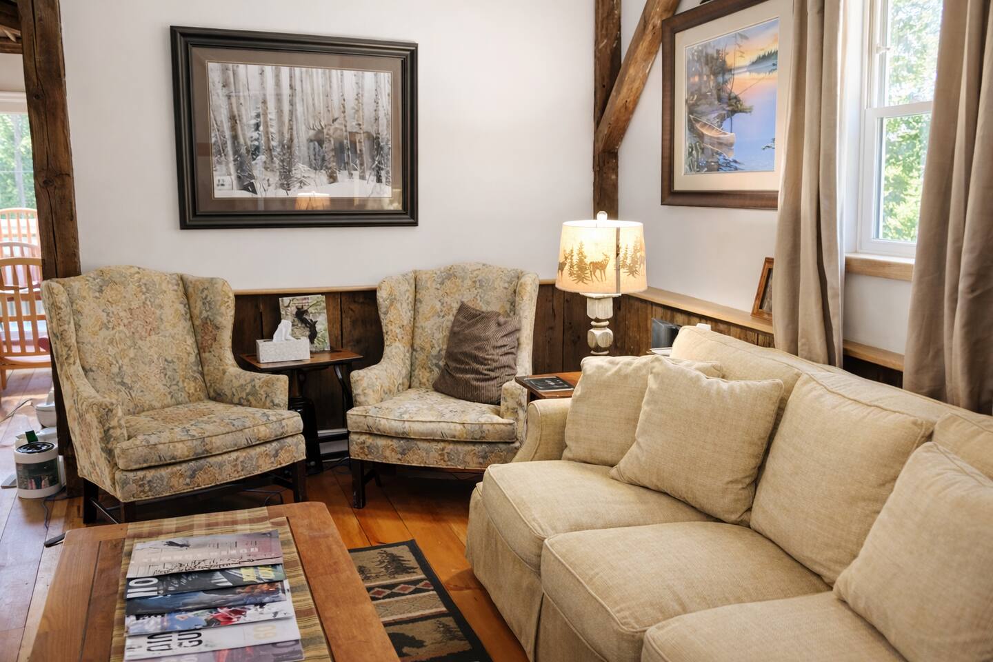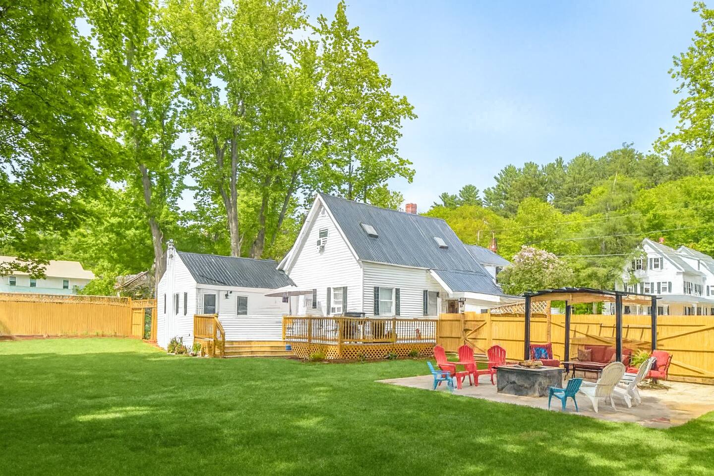 Welcome to your North Conway mountain getaway—where cozy comfort meets an unbeatable in-town location. Tucked on a quiet dead-end street just steps behind Main Street, this family-friendly retreat offers peaceful privacy while keeping you walking distance to shops, dining, and everything downtown. Enjoy slow mornings on the patio or in the spacious backyard, then spend your day skiing at Cranmore, exploring local trails, or checking out the village. Whether you’re here for adventure or relaxation, this home gives you the perfect balance of convenience and calm. Driving Distances ✔ 4-min drive to Cranmore Mountain ✔ 2–3 min walk/1-min drive to North Conway Village ✔ 14-min drive to Attitash Mountain ✔ 17-min drive to Black Mountain Ski Area ✔ 25-min drive to Wildcat Mountain ✔ Close to hiking, scenic overlooks, shops & restaurants The Space ✔ Perfect for families or small groups ✔ Quiet dead-end street with a large private backyard ✔ Patio + fire pit for relaxing evenings ✔ Fully equipped kitchen for home-cooked meals ✔ Cozy, welcoming living spaces ✔ Walking distance to downtown but tucked away for privacy ★★ Main Level ★★ Living Room: Spacious open concept Dining Area: Seats up to 5 guests, adjacent to the fully equipped kitchen. Kitchen: Modern and fully stocked with multiple small appliances, coffee maker, and stainless steel appliances. Bathroom: Full bathroom with double sink ★★ Second Level ★★ Bedroom 1: King bed with plenty of space for your belongings Bedroom 2: Queen bed with twin bed that has trundle underneath. ★ Outdoor Living ★ Deck: separate outdoor dining area on the deck with a propane grill ★ Indoor Living ★ Living Room: Comfortable seating with a TV. ★ Kitchen ★ Fully equipped with modern appliances: refrigerator, oven, microwave, dishwasher. Coffee setup with coffee maker Ample counter space, cookware, and utensils for large meals. ★ General ★ High-speed WiFi Air conditioning window units Washer and dryer ★ Community Amenities ★ Located near local attractions like hiking trails, multiple ski resorts and North Conway Village.